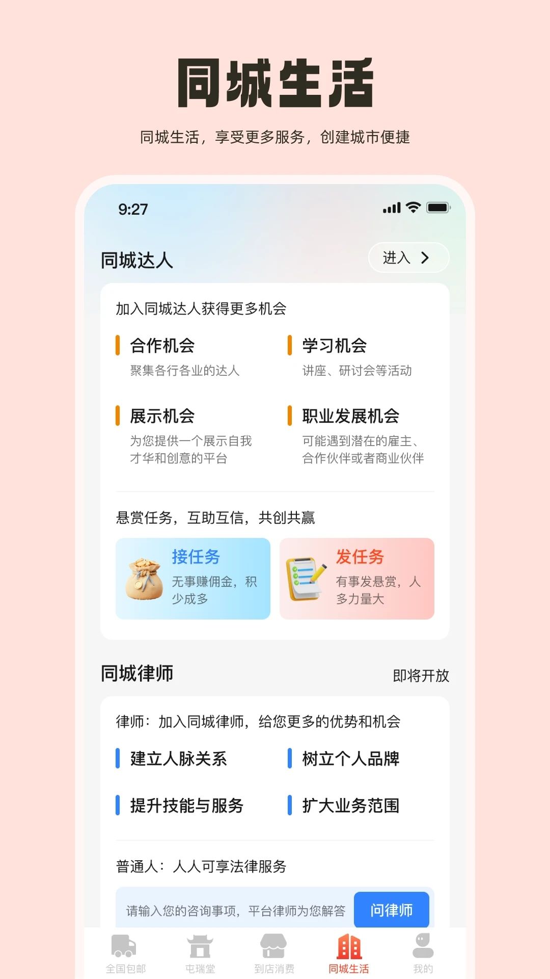 1、能认证同城达人,更好的接任务,发任务的一个程序;