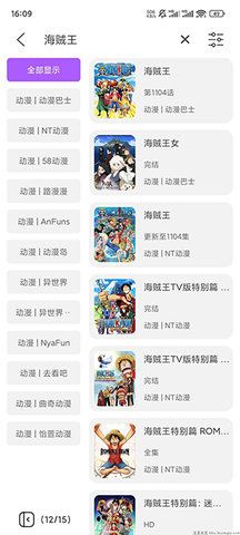 1、能根据地区,年代,热度口碑选择动漫的视频;
