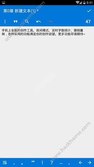 1、夜间模式、实时字数统计、撤销重做;2、各种实用的功能满足你的创作欲望。