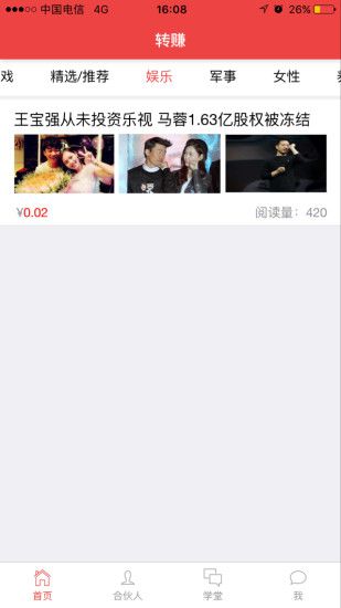 2、全新的文章板块,完善的合伙人模式,流畅的提取金币规则,高收益,提取金币快,尽在转赚。