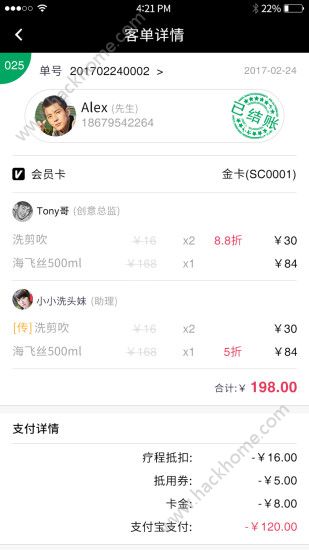 支持多种付款方式,顾客可使用储值卡、疗程、抵用券和其他线上支付方式结账,全程无现金,避免找零、现金缺失等麻烦,顾客省心,老板放心。