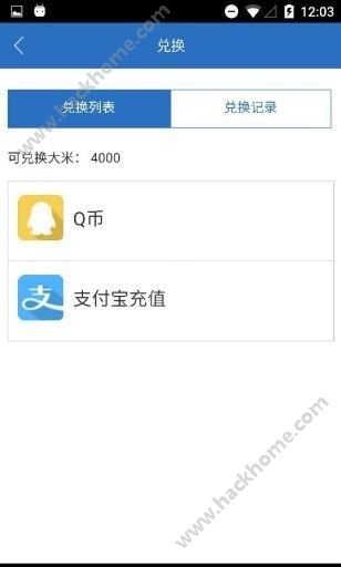 3、大米可以兑换Q币,话费或者支付宝提取金币;