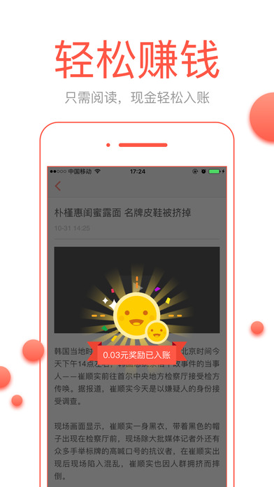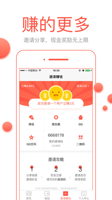1、轻松赚钱 - 只需阅读,现金轻松入账;2、赚的更多 - 邀请分享,现金奖励无上限;