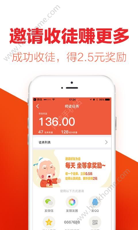 3、师徒任务升级,成功邀请好友使用,立得2.5元,更多新手任务等你开启