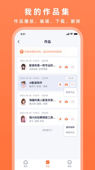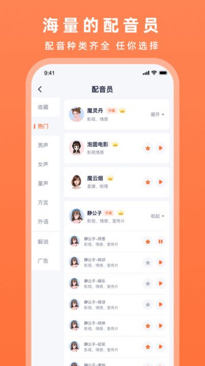 2. 高质量音效输出,配音效果逼真自然,用户体验好,满足用户对配音作品的高要求;