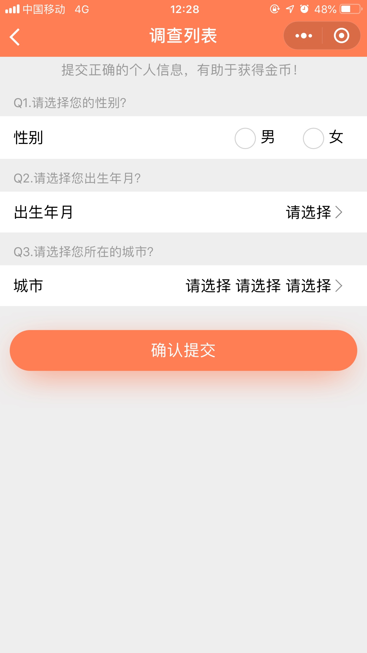 3、最后告诉大家一个终极技巧,不论做哪个问卷调查平台,都不要一直选真实的选项。比如有一份问卷是调查像不像买化妆品的,如果你第一个选择不想,那就直接中断了,你可能就没有收益或者收益哦很少。基本上前几个问题一问,你就知道这份调查的目的了,比如像调查买车的选择,你就表现出最近很想买车的样子,见人说人话,见鬼说鬼话,而不是自己想什么就选什么,多尝试几个问卷摸索就懂了。