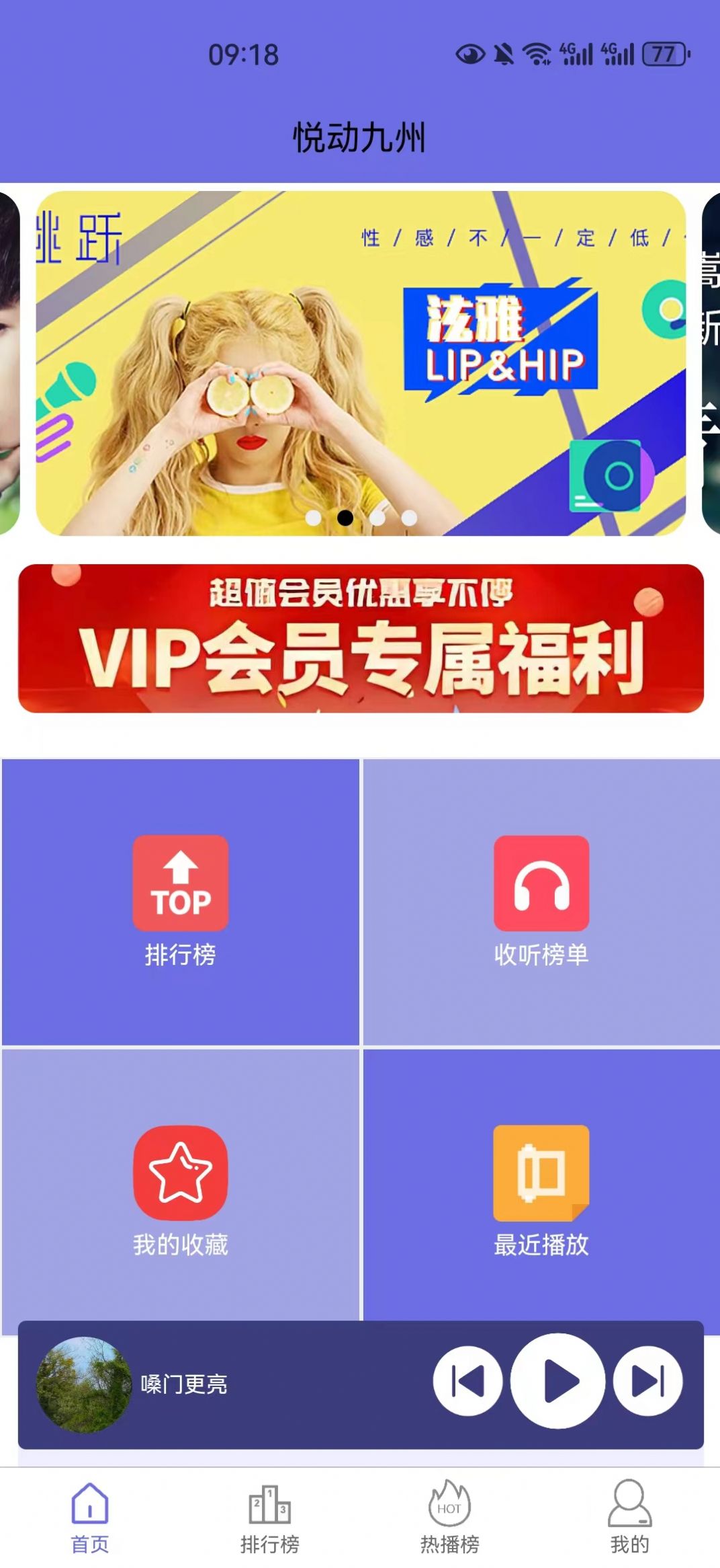 悦动九州app是一款集音乐播放、音乐榜单、在线电台于一体的全能音乐软件,能享受高品质音质的服务的综合程序,还支持离线下载、定时播放功能,在线百万歌曲无缝切换,是可以提供个性化推荐、精准搜索、用户收藏等功能,用户可根据自己喜好轻松发现喜欢的音乐。