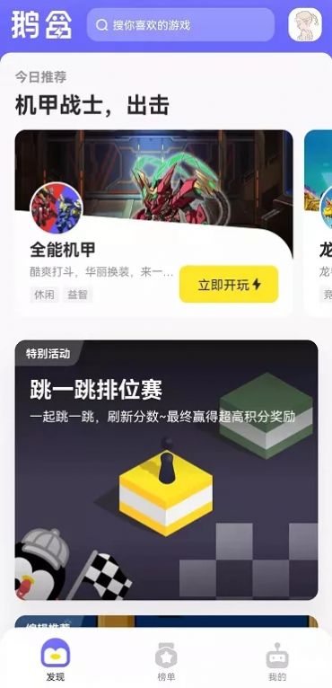 1.除了游戏推荐、榜单、分类等基本功能外,"鹅盒”还包含了一个"特别活动”板块。