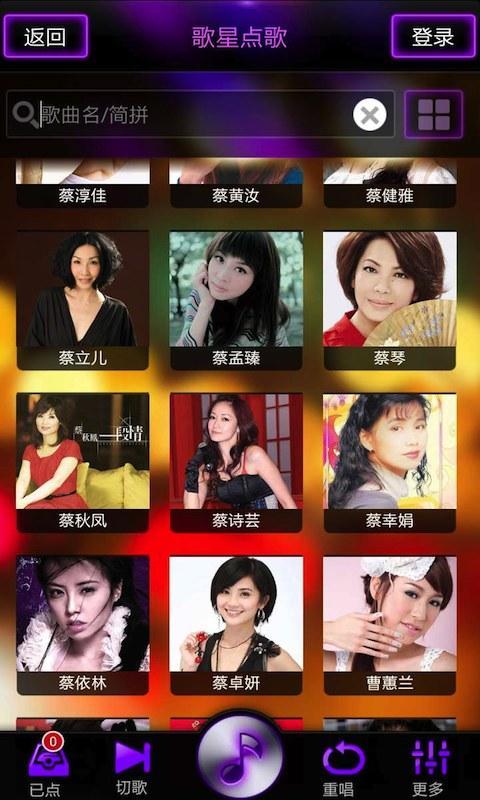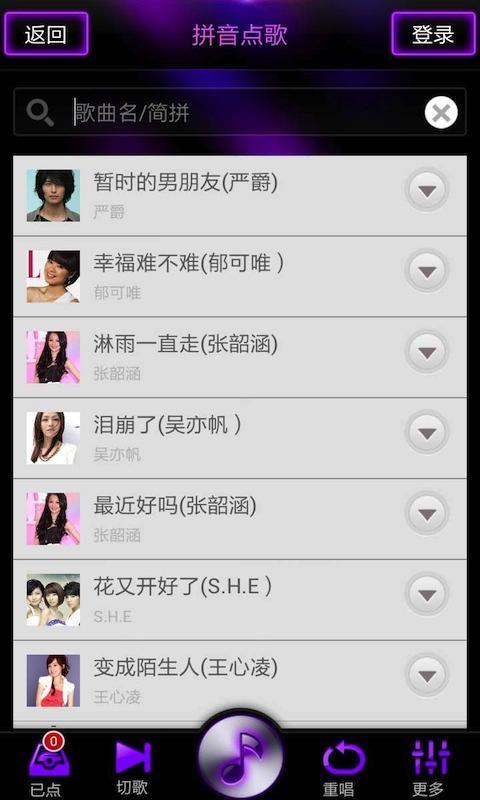 2、遥控点歌:拿起自己的Android手机看到就点,拼音、手写、歌星、排行一应俱全;