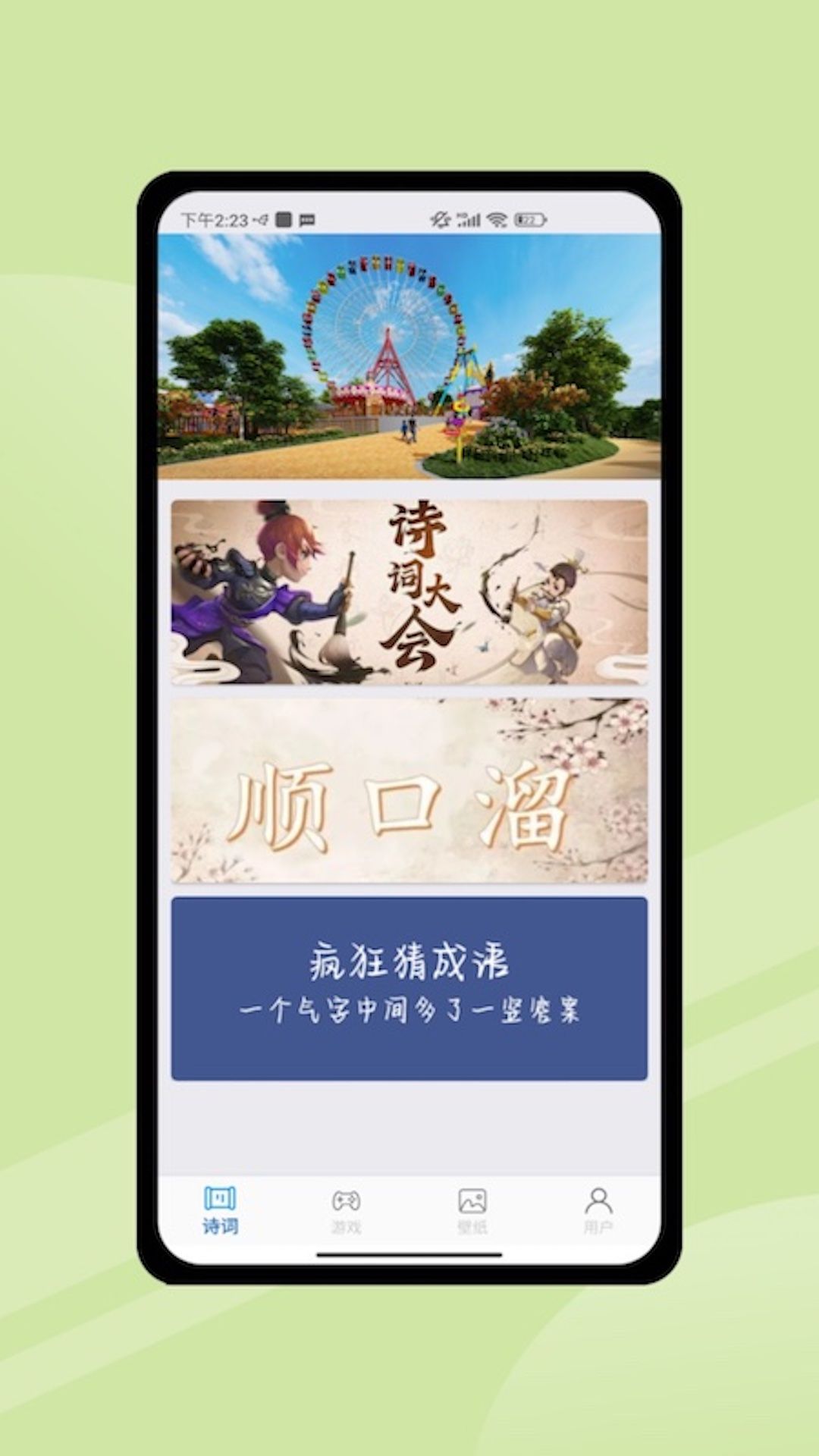 2、应用程序有比较经典的找茬和成语游戏,方便互动;
