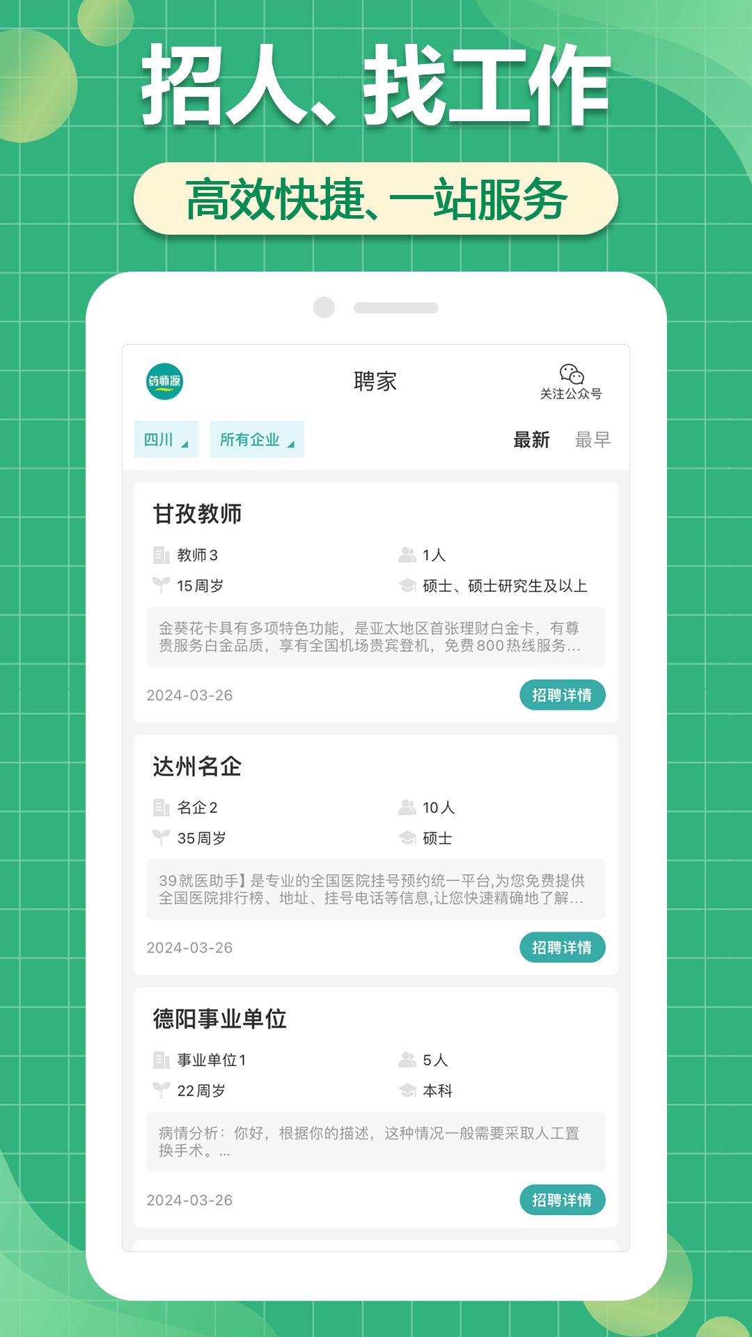 2、更多的企业直招、急招的信息都可以获取;