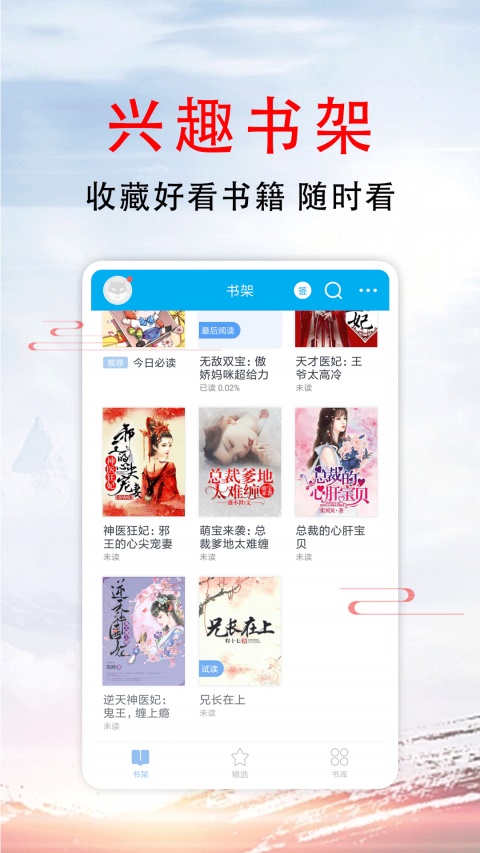 打造专属的个人书架并且设置不同的阅读背景,带来趣味又个性的字体风格。