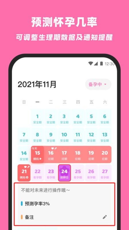 3、是大家备孕必备的工具,可以随时记录自己经期。