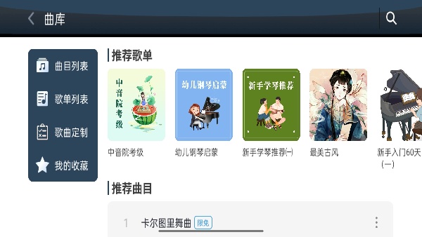 4.超过百首歌曲的丰富曲库,包括专业钢琴考级歌曲;
