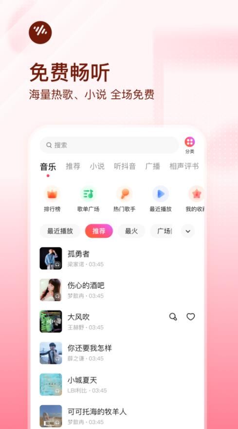番茄畅听音乐版app是特别好用的音乐小说软件,这里小说和音乐都可以关注,大家都可以很方便的听音乐和小说,解放双手,超多的悬疑小说,各种流行音乐都在这里,喜欢的都可以很快的领取免费的资源哦。